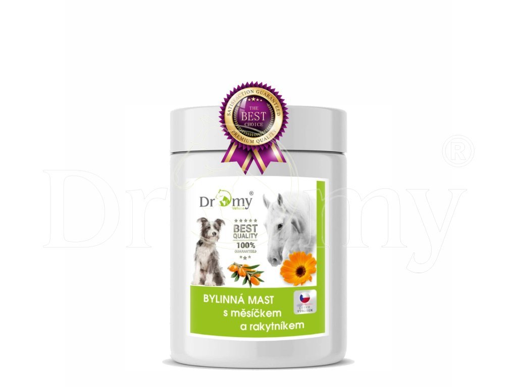 Bylinná mast určená k celoroční péči o pokožku koní a psů. Originální receptura s obsahem Tea tree oil, tymiánového oleje, rostlinných extraktů z měsíčku lékařského, rakytníku řešetlákového a rozmarýnu lékařského pokožku vyživuje, hydratuje, zvláčňuje.