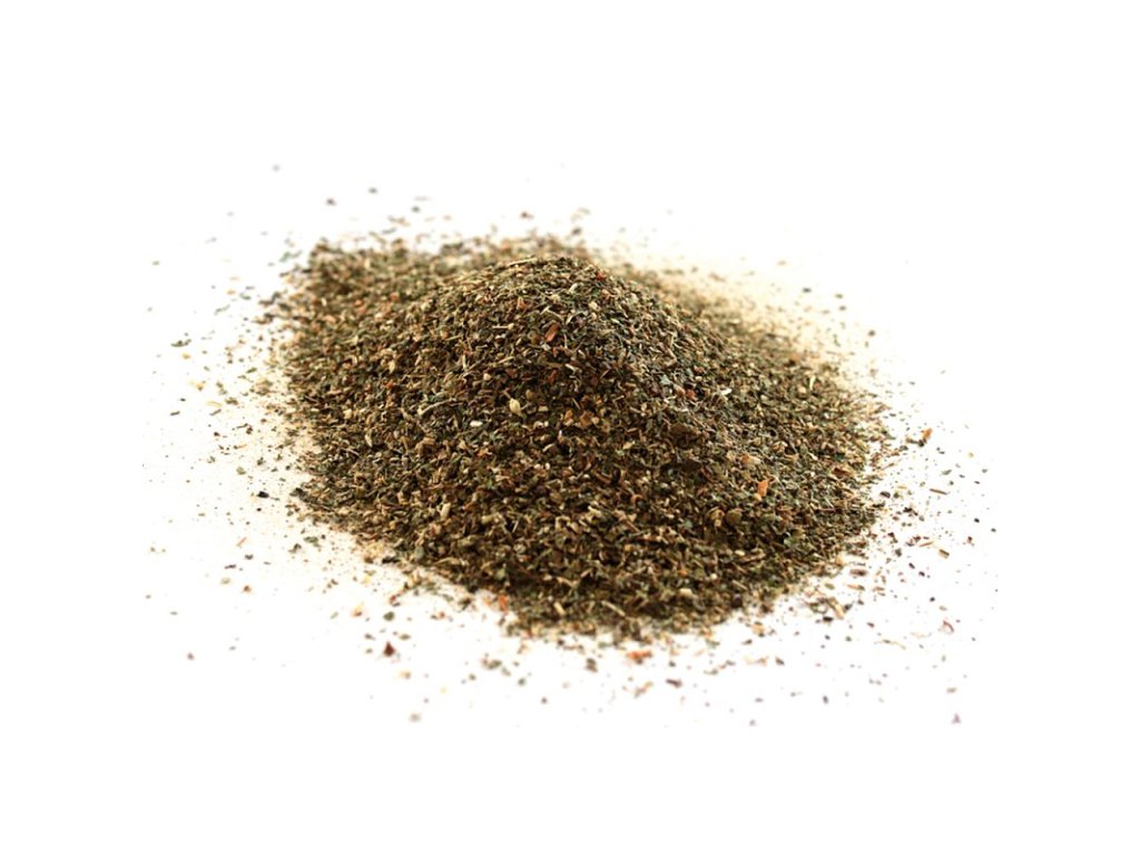 Směs sušených bylin (meduňka lékařská 40%), oxid hořečnatý, inaktivované kvasinky rodu Saccharomyces cerevisiae, sušená řasa Schizochytrium limacinum 1000mg/kg.