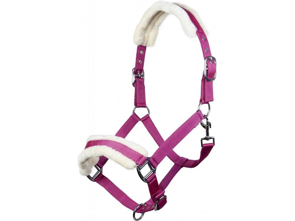Pohodlná ohlávka podložená měkkým umělým beránkem na nátylníku a nánosníku. Velikost lze přizpůsobit v horní části z obou stran a také v dolní části ohlávky. Umělý beránek je prodyšný a snadno se udržuje.